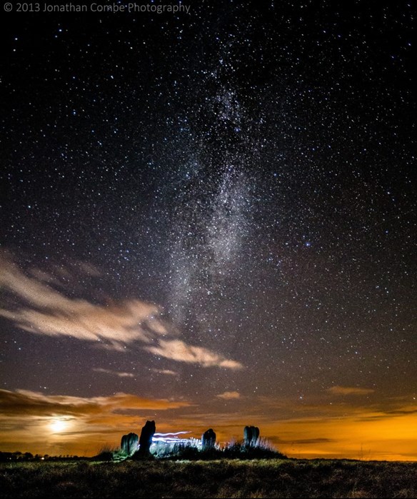 Milky Way and the night sky over Duddo Five stones. Photograph copyright of Jonathan Combe under the Creative Commons licence.